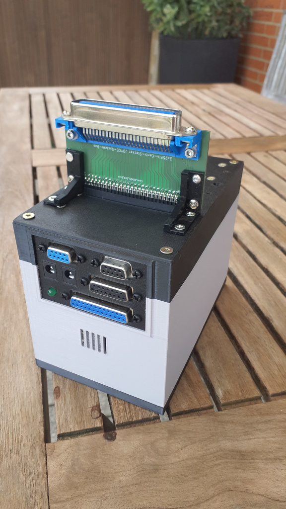 Ein Adapter, um den KLOTZ an eine original Joyce stöpseln zu können fehlte bisher noch. Einzig eine Quelle für den gew. 50-pol Centronics-Stecker für die Platinenmontage wollte sich bisher nicht auftun. Vor einigen Wochen bin ich dann per Zufall auf eBay über ein passendes Angebot gestolpert - Fa. Kessler-Elektronic hatte sich aus der Deckung gewagt. Warum die Dinger so selten zu erhaschen sind kann ich mir nur damit erklären, dass ein Centronics-Anschluß mit 2x25 Pins heute nicht mehr so angesagt ist.