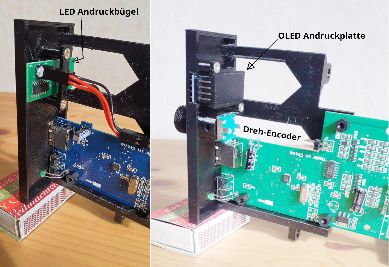 Hier das Ganze als 7zip-Archive mit mehr Bildern bzw. die step- u. stl-Daten. Im Archiv mit den Bildern ist auch angegeben, welcher Type OLED-Display bzw. Dreh-Encoder (jeweils als Bild) ausgewählt wurde.